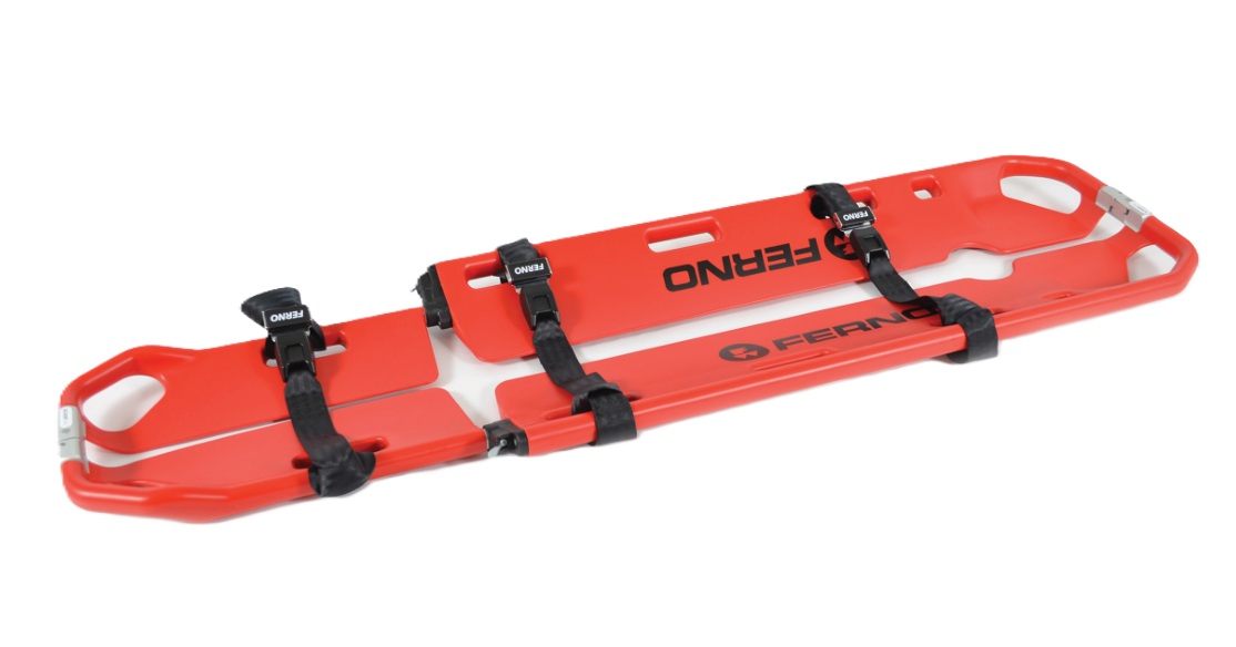 Las piezas entrelazadas de dos bisagras se ajustan a la altura del paciente y permiten a los operadores juntar las dos mitades debajo del paciente para “recogerlo” suavemente. La construcción de polímero radiotransparente y tratado térmicamente mantiene una temperatura uniforme para una mayor comodidad del paciente, y la superficie fácil de limpiar es impermeable a los fluidos. Se ha descubierto que la camilla Scoop EXL “es tan eficaz, si no superior, al estándar de cuidado de un tablero rígido y largo” cuando se utiliza para la inmovilización de la columna vertebral.