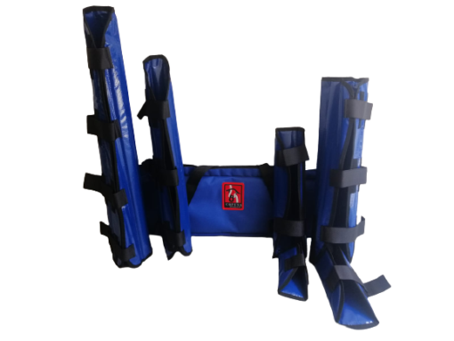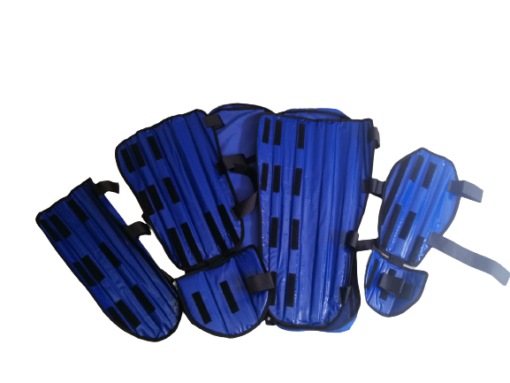 El set de férulas está compuesto de dos no articuladas y dos con articulación que se utilizan en extremidades inferiores y superiores según lo que necesite el paciente.