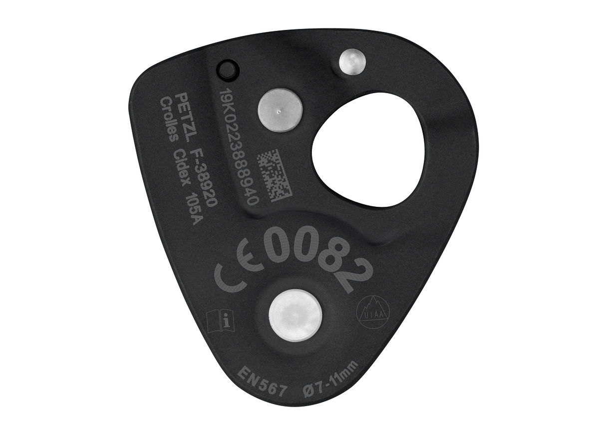 – Orificio que permite conectar a la polea, gracias a un cordino, un mosquetón Sm’D para convertirla en imperdible. - Diseñada para el rescate.